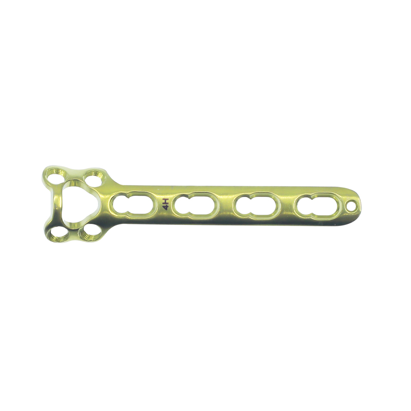 Una placa de bloqueo cubital distal es un dispositivo médico especializado que se utiliza en el tratamiento quirúrgico de las fracturas cubitales distales.Está hecho de metal y tiene múltiples orificios para tornillos para permitir la fijación al hueso.La placa se coloca en el hueso del cúbito, que es uno de los dos huesos del antebrazo, y se fija con tornillos.Una vez colocada, la placa proporciona estabilidad al hueso, lo que permite una cicatrización adecuada.