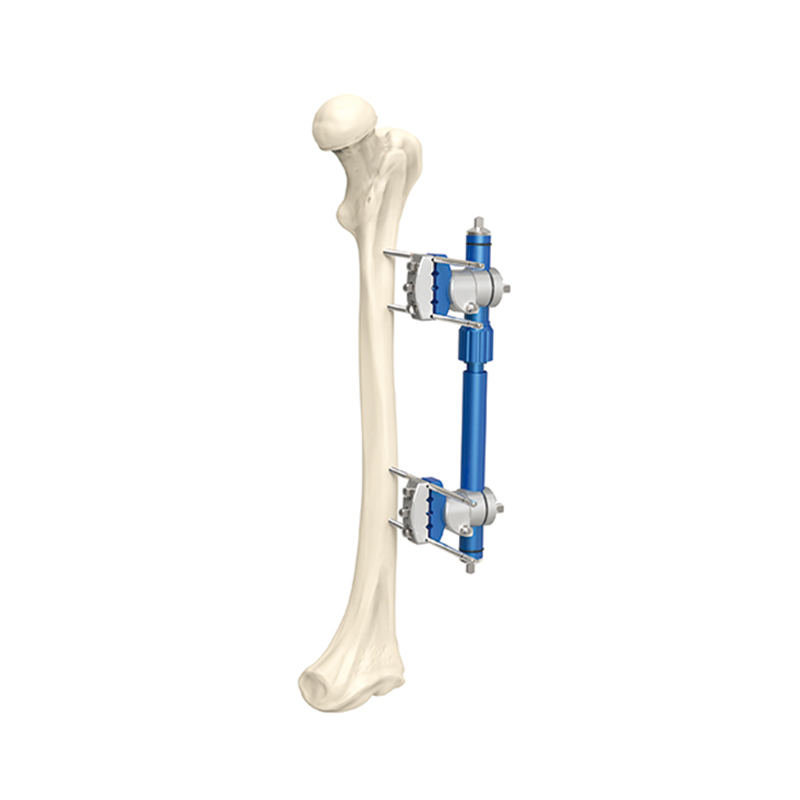 Después de la cirugía, el médico puede hacer ajustes finos a la posición, la alineación y la longitud de los fragmentos de fractura manipulando las bielas y las juntas del marco externo para lograr una reducción más ideal.