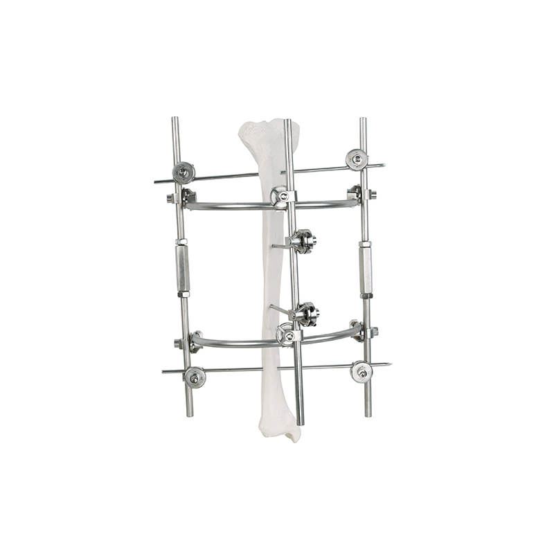 Después de la cirugía, el médico puede hacer ajustes finos a la posición, la alineación y la longitud de los fragmentos de fractura manipulando las bielas y las juntas del marco externo para lograr una reducción más ideal.